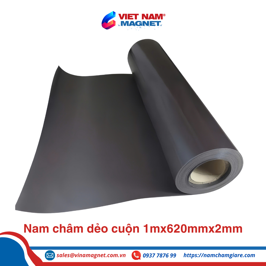Nam châm dẻo (Flexible Magnet) là loại nam châm tổng hợp từ bột ferrite và cao su dẻo, có khả năng uốn cong, cắt dán linh hoạt. Dạng cuộn 1m x 620mm x 2mm thường dùng nhiều trong ngành quảng cáo, in ấn, giáo dục và đồ chơi bởi tính ứng dụng đa năng và chi phí hợp lý.